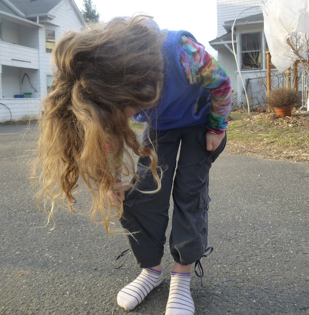 So happy. They have all the fun technical details of the original pants (drawstring cinched leg openings, three fun cargo pockets, quick dry fabric) with a soft knit waistband- I don't think pants get better than that. I heard her declaring to her sister while putting them on, "Fern! These will be great ninja pants!" Awesome.
